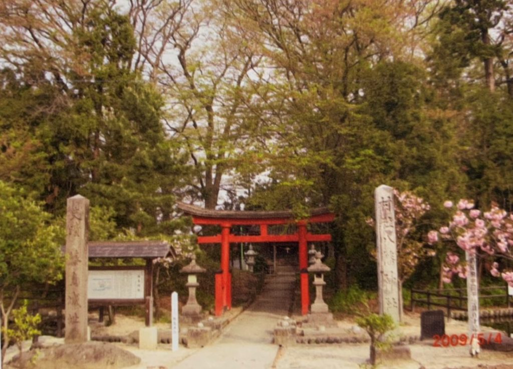 頂きには三角点標石があり、奥まった処に庄内平野を見守る様に奥宮が鎮座していた。北側には大木が刈り払われた空間から、緑の絨毯の庄内平野が広がり、北に眼を移すと羽黒山・月山の山並みが夕霧の中に霞んでいた。 誰にも会わず母狩山への縦走路を確認してから下山に掛った。小鳥の多い山域で暫く、小鳥達の囀りに心を弾ませ車に戻った。